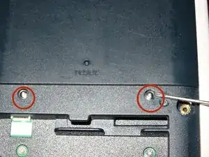Отверните два винта защёлки над отсеком для батареек, используя плоскую отвёртку 1 мм.
