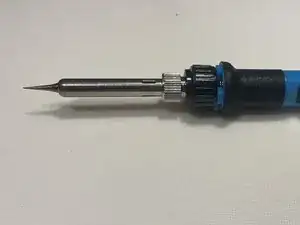 Нанесите кончик паяльника по окружности места соединения наушника и оголовья, позволяя кончику оставаться на каждой области около одной секунды.