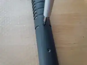 Этот этап немного сложнее, поскольку потребуется сдвинуть круглый фланец с верхней части трубки, чтобы выдвинуть нижнюю трубку и получить доступ к разъёмам.