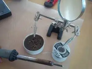 Найдите оборванный или ослабший провод, зачистите пару миллиметров изоляции и подготовьте к пайке. Используйте держатели с зажимами, чтобы зафиксировать оба конца перед точечной пайкой.