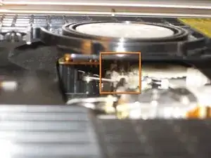 Обратите внимание: шпиндель, который необходимо смазать, находится под белым дисковым элементом, выделенным на первом изображении.