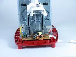 Повернув регулятор лицом к себе, поднимите основание тостера вверх и отведите в сторону, пока основание не окажется чуть выше кромки корпуса. Это отсоединит регулятор потемнения от остальной части тостера.