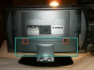 Снимите четыре винта, которые крепят узел подставки к шасси.