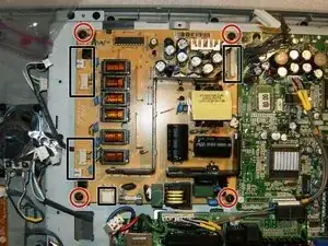 Выверните четыре винта, которыми плата питания крепится к шасси.