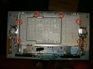 Выверните восемь винтов с крестовой шляпкой, удерживающих заднюю крышку на шасси. После снятия винтов задняя крышка просто отщёлкивается.
