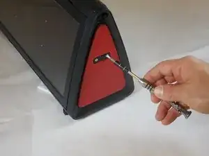 Отвинтите два винта, которые были закрыты логотипом «Eton», с помощью отвёртки PH0.