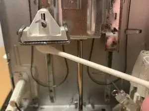 Если это не помогло, найдите белые пластиковые клинья (по обеим сторонам), также называемые удлинителем, которые обеспечивают контакт между рычагом и электромагнитом.