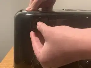 Просуньте руку в корпус тостера и захватите заднюю часть рычага.