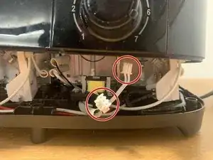 Отключите два разъёма, подключённых к плате с каждой стороны тостера (всего должно быть снято 4 провода).