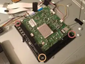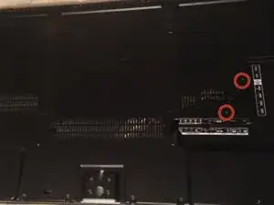 Сначала снимите (20) винтов с головкой Phillips с задней панели. Если ваш телевизор установлен на стене, вам также придется демонтировать его с настенного крепления.