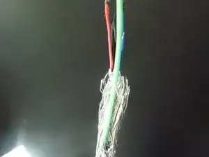 Здесь я использовал экран короткого куска видеокабеля для этой цели. Срежьте внешнюю пластиковую изоляцию кабеля и удалите её.