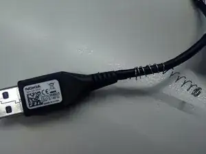 Пружину насадите так, чтобы она перекрывала повреждённый участок с обеих сторон. Затем зафиксируйте сторону с разъёмом суперклеем.