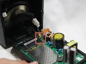 Отсоедините вилку адаптера питания от платы большим пальцем.