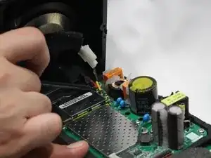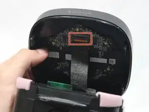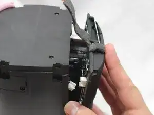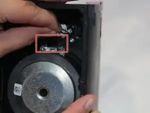 Отсоедините кабель динамика от платы, оттянув его большим пальцем.