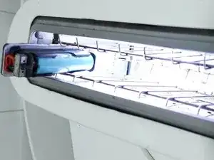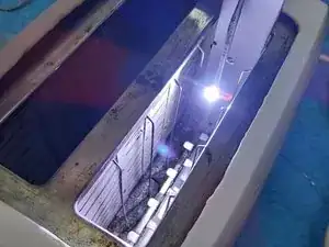Инструмент зафиксирован на месте, и точка освещения функционирует, позволяя работать при 100% освещении внутренней части по сравнению с другим тёмным отверстием.