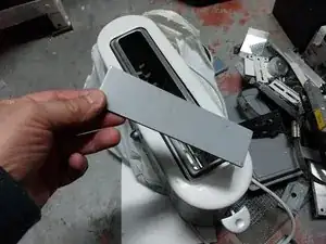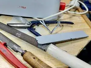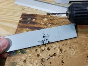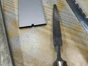 Испытания с различными кусками жести, чтобы определить, какая лучше всего подходит к отверстию.