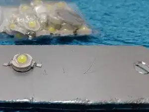 Светодиод приклеен цианокрилатным клеем к металлической пластине для лучшего отвода тепла.