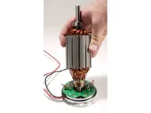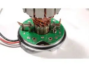 Удерживайте ротор вниз большим пальцем. Магнитное поле сильное и пытается поднять его: если это произойдет, нужно вернуть щётки на место, как на предыдущих шагах.