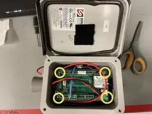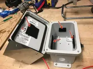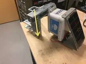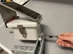 Используя винты и отвертку, прикрутите солнечную панель к этим отверстиям. После того как солнечная панель закреплена на металлической пластине, прикрепите металлическую пластину к крышке корпуса
