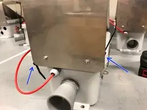 Примечание: высокая сторона металлической пластины должна находиться с той же стороны корпуса, где расположены отверстия для ультразвукового датчика и кабельных вводов.