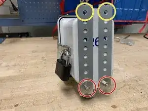 Винты и гайки должны быть установлены таким образом в отверстиях по бокам крышки коробки (то есть гайка снаружи)