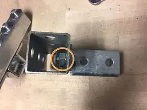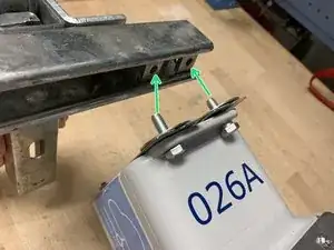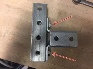 Прикрепите усилительные направляющие к задней части узла, используя два 5/16‑дюймовых шестигранных болта, две 5/16‑дюймовых шестигранных гайки и две 5/16‑дюймовые шайбы внешним диаметром 1,25". Вставьте болты в два нижних отверстия корпуса узла, используя нижние отверстия направляющих, как показано на изображении.