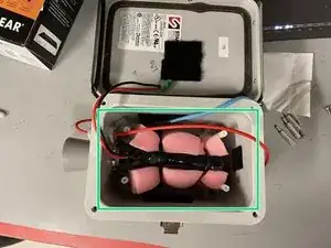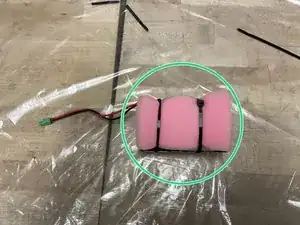 Поместите аккумулятор между двумя кусками пены и зафиксируйте его с помощью хомутов. Соедините хомуты, чтобы получить два удлинённых хомута