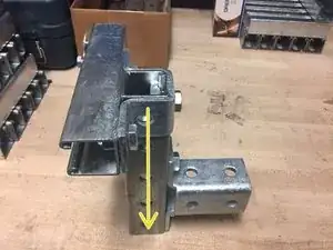 прикрутите корпус узла к профилю при помощи двух шестигранных болтов 5/16" и двух шайб 5/16" диаметром 1,5". Обязательно пропустите болты через усилительные рёбра.