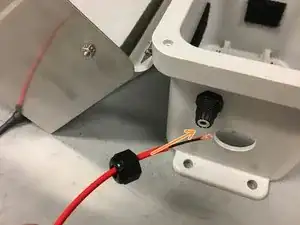 Теперь нужно вставить красный удлинительный провод от солнечной панели в корпус коробки