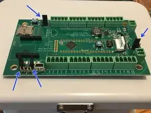 Возьмите плату Open‑Storm и установите 4 перемычки в показанные места