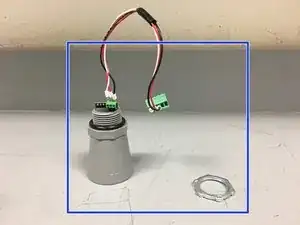 Соберите датчик глубины, добавив уплотнительные кольца и соединительные провода в порядке, показанном на фото, оставив гайку-обод в стороне