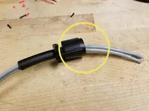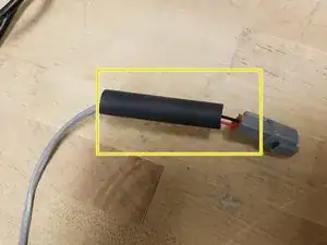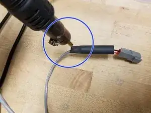 23. Отмерьте и отрежьте два дюйма термоусадочной трубки. Наденьте её на провод, чтобы она покрыла место окончания серой изоляции.