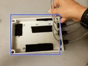 35. Поместите несколько кусочков мягкой части липучки внутрь корпуса.