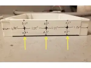 25. Установите места, где необходимо просверлить три отверстия в одной из сторон корпуса узла.