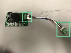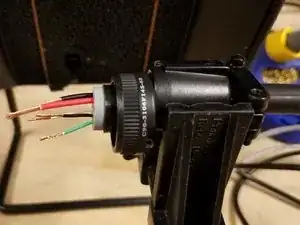 10. Припаяйте провода к 6-контактному разъёму. Начните с тонкого чёрного провода в нижнем контакте, затем припаяйте белый провод.