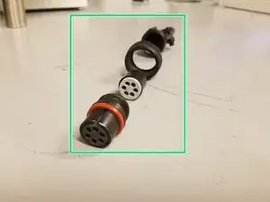 8. Вставьте провода в серую пенопластовую часть 6-контактного разъёма Amphenol.