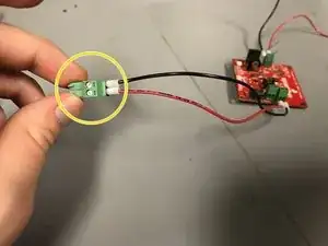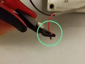 18. Наденьте металлические наконечники на красный и чёрный провода.