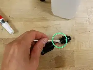 15. Нанесите изопропиловый спирт на ватную палочку и удалите излишки средства для удаления флюса с припаянных проводов.
