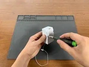 Открутите два винта с крестообразной резьбой из пластика с помощью отвёртки с крестообразным шлицем №1.