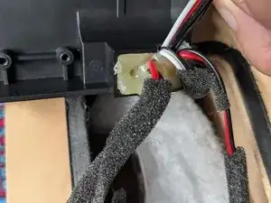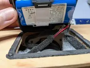 Чтобы извлечь аккумулятор из каркаса, отвинтите два винта, удерживающие его. Поскольку провода приклеены, используйте фен, чтобы размягчить клей, и осторожно вытяните кабель.