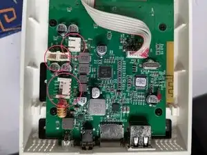 Крепление каркаса аккумулятора выполняется четырьмя винтами; в каркас входят сам аккумулятор, его провода, провода левого и правого каналов и основной аудиопровод. Используйте крестовую отвертку (PH2 или больше), чтобы их снять, и храните винты для последующей сборки.