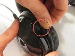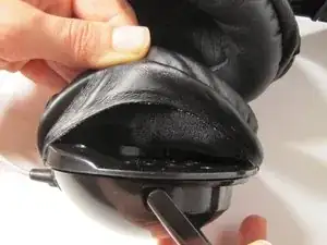 Продолжайте тянуть амортизатор до тех пор, пока он не начнет отделяться от наушника.