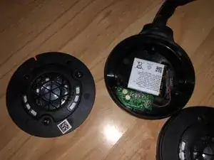 Начнём с левого чашки. Удалите три винта с крестообразным шлицем Philips с помощью отвертки #00 Philips.