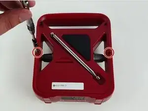 Удалите два винта Phillips #00, расположенные в центре задней части устройства.