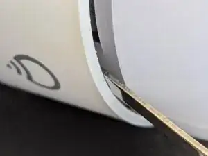 Честно говоря, ложки IKEA справлялись не лучшим образом, как видно, они врезались в пластик. Идеально подошёл бы пластиковый инструмент, но обычные медиаторы не соответствуют радиусу лампы, а лопатки слишком толстые, чтобы попасть внутрь, и слишком короткие, чтобы дотянуться до глубины защёлки. Защёлки расположены довольно глубоко!