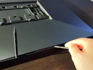 Вставьте пластиковую лопатку в один из швов задней панели. (Возможно, имеет смысл начать с одной из длинных сторон, так как защелки менее сильно закреплены.)
