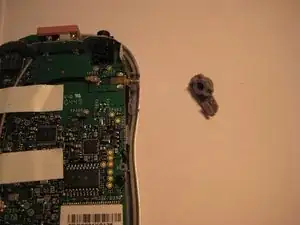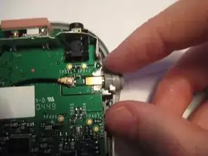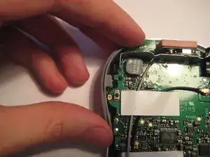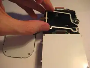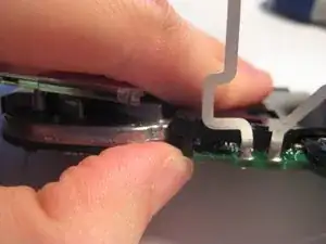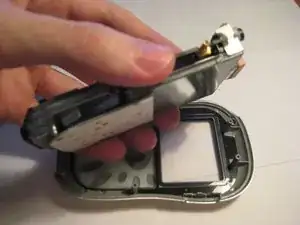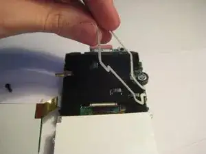 Поверните проволочную рамку, которая была под ЖК-экраном, с левой стороны.
