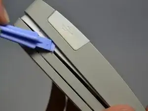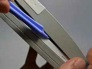 С помощью пластиковых инструментов для вскрытия аккуратно отожмите сторону большой панели.