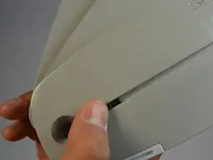 Отвинтите винт 2 мм с крестовой головкой #1, расположенный на дне устройства, рядом с петлёй.