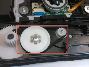 Ремень лотка диска обеспечивает открывание и закрывание лотка. При нажатии кнопки извлечения два шестерёнки вращаются вместе с ремнём. Если этот ремень порван, треснул или отсутствует, обе шестерни не будут вращаться синхронно, и лоток перестанет открываться. Для устранения этой неисправности ремень можно заменить уплотнительным кольцом или другим ремнём лотка того же размера.